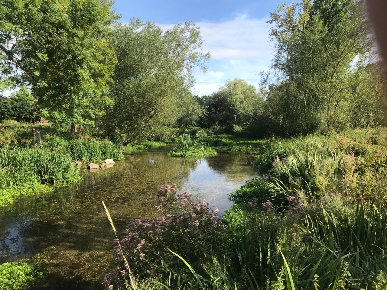 After passing Stonebridge Meadow on the edge of Marlborough, my route took me along the banks of the Kennet river, as far as the grand-looking Littlecotte House, which is now a hotel with lots of “executive,” cars parked outside. Here, at the spot where Wiltshire ends and west Berkshire begins, my app directed me to walk along the busy road, which Chris tells me I could have avoided by cutting across to the canal before I reached the hotel. The app is valuable but local knowledge trumps it.