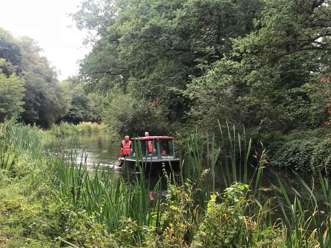 The weather was good and the walking pleasant all day. After a short detour around some MOD land, I was back on the Basingstoke Canal towpath. I saw only one boat on the water today, and it was an official patrol boat, picking up rubbish from the canal. Perhaps pleasure boats don’t ply this section of the canal, or perhaps everyone’s back at work after the bank holiday. The peace of the canal was occasionally disturbed by the sound of military planes taking off and landing at the nearby Farnborough airport. I speculated about the people that I met on the tow path – some might have been off duty soldiers from the barracks all around, running for fun; some might have been retired; some might have been. cycling to or from part-time jobs.