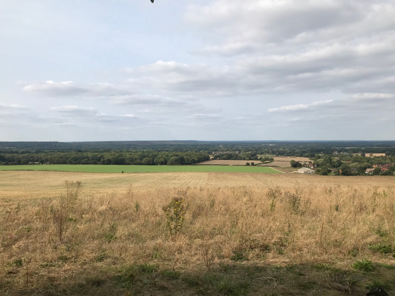 When I left Jess’s house in Church Crookham at around 8:00am, I still hadn’t made up my mind whether to aim for Guildford or Puttenham. I stopped at the entrance to the MOD land up the hill and considered my options. Although I’m ready to walk a little further, Puttenham won the day because I didn’t want to bypass Watts chapel (which is between here and Guildford) and Puttenham has an Eco Camping Barn, where I can stay for £15; my cheapest night so far. The first route that my app suggested went alongside the busy A31 dual carriageway for some distance. Rather than do that, I chose to walk across country to Wanborough and then south across the A31, a route which was mostly on footpaths and promised to add only 1km to the total distance.