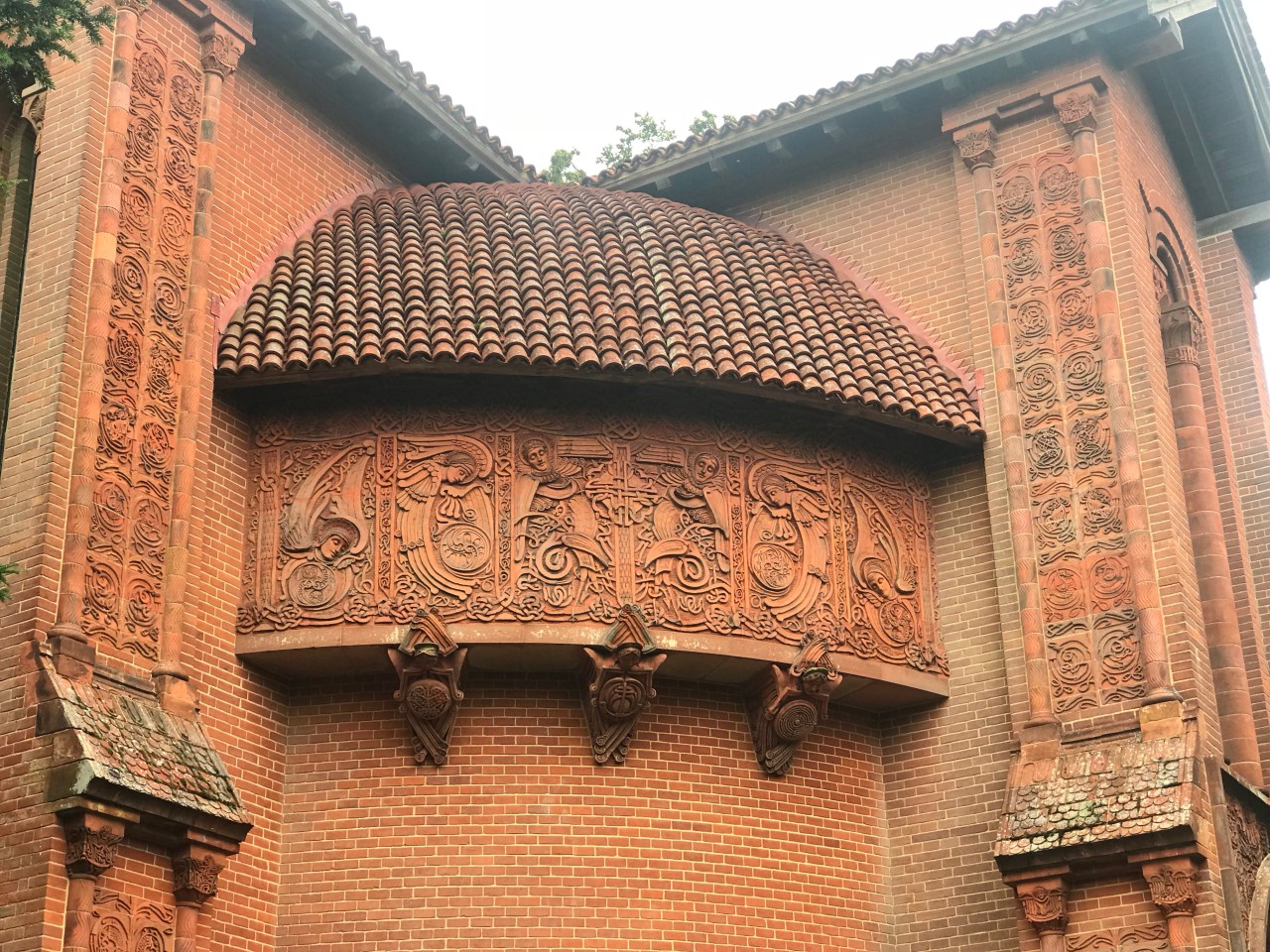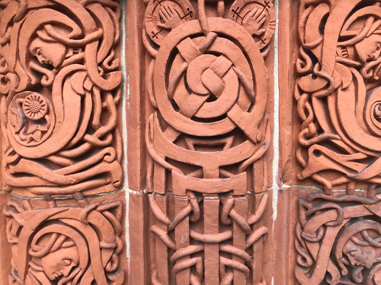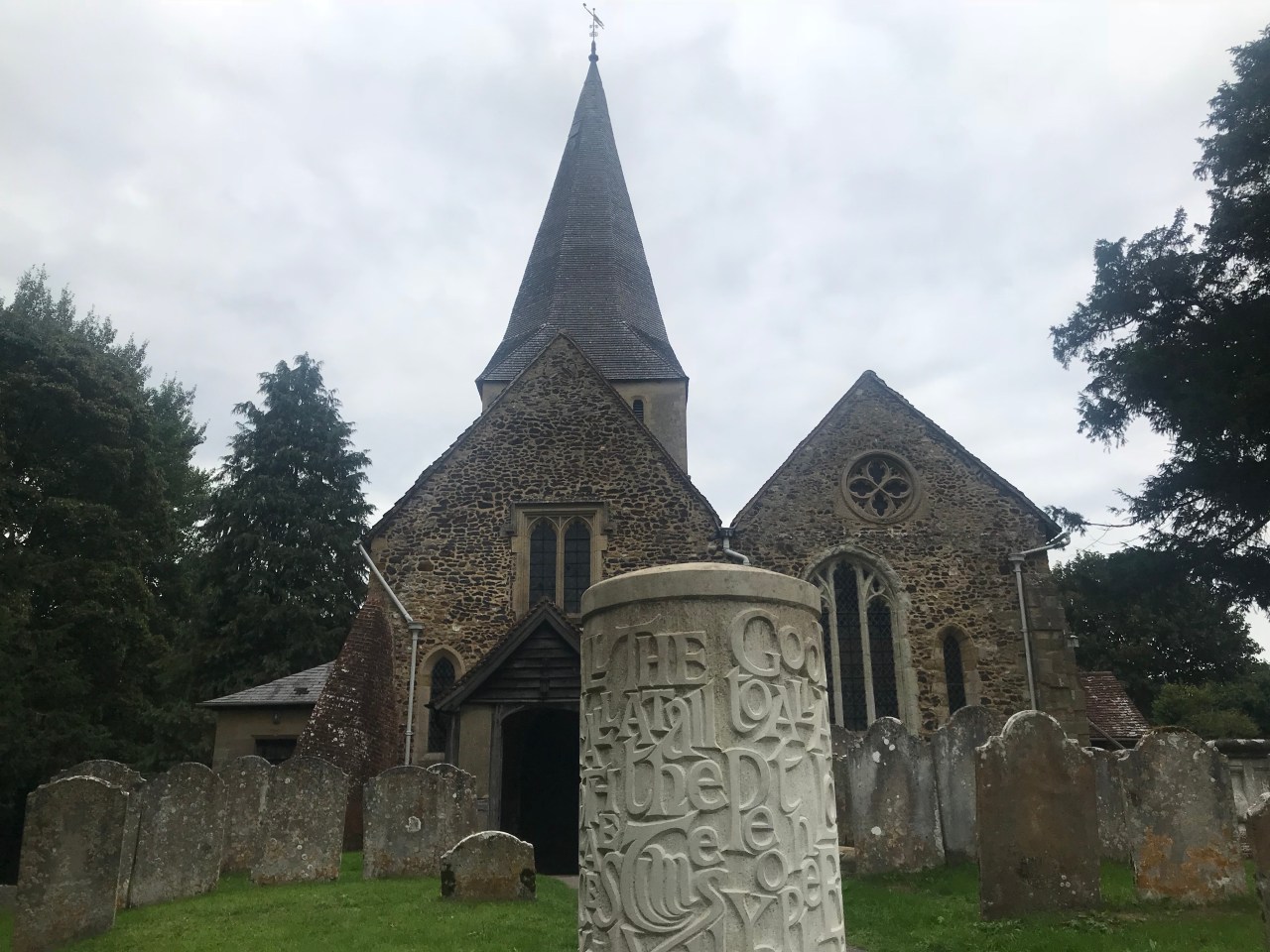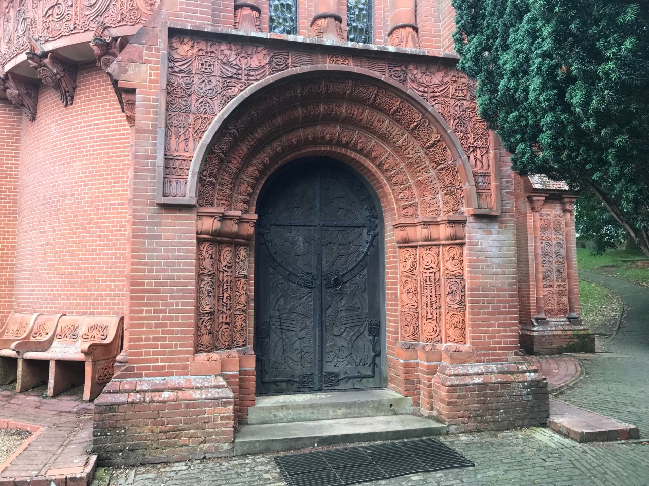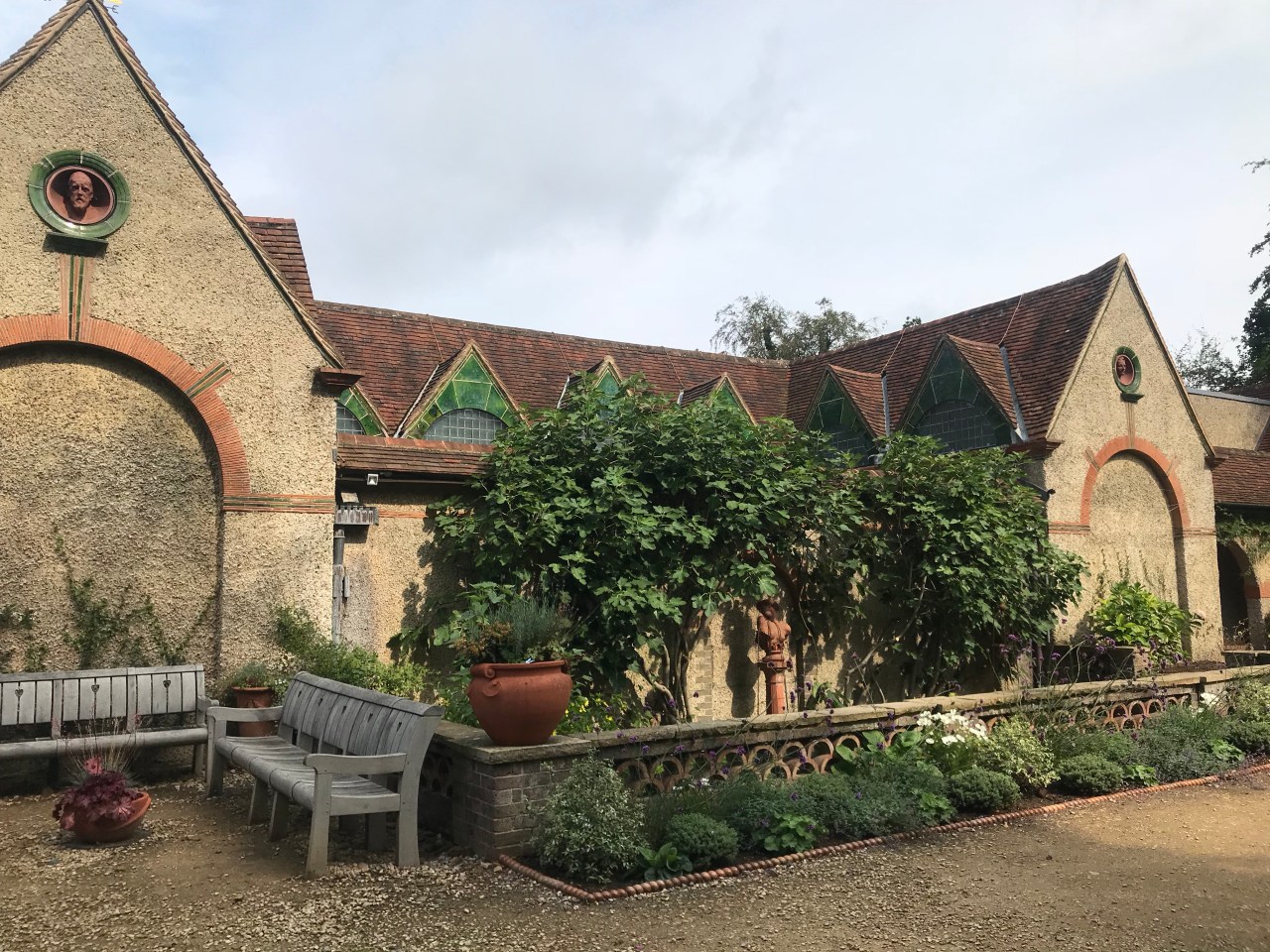My first stop, Watts Memorial Chapel in Compton, required a slight detour from the North Downs Way but one that I was eager to make, having visited this place with an Anglo-Japanese walking club some years ago. The chapel, designed by local resident artist Mary Fraser-Tytler, the wife of painter and sculptor George Frederic Watts. It’s tiny but the Celtic Art Nouveau decoration is exquisite in its detail. Stepping inside, I was stunned again, even though I knew what to expect.