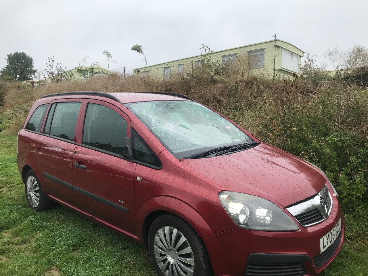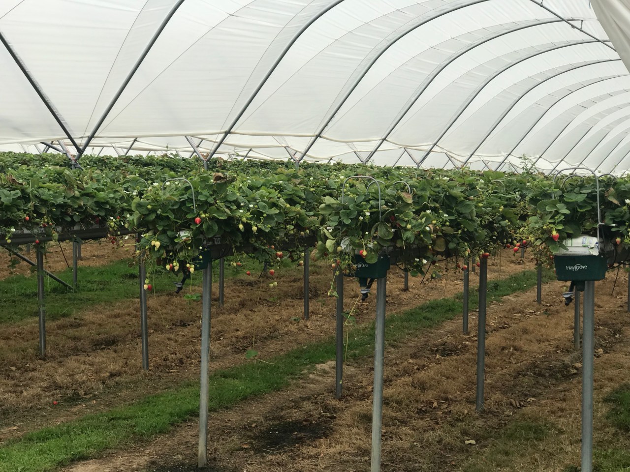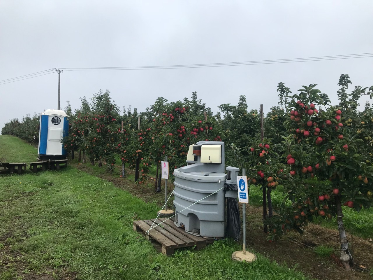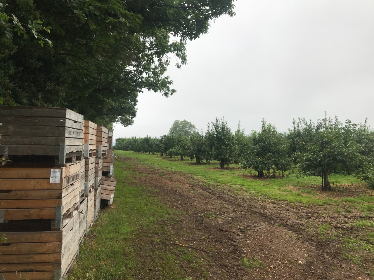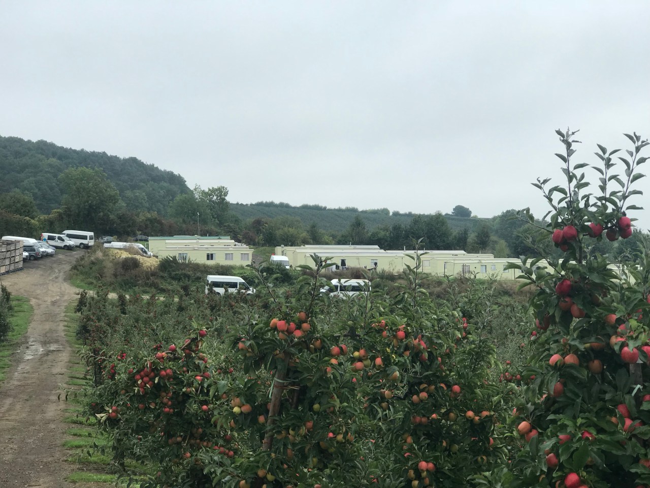 Once I got myself onto the correct path, I found myself walking between apple orchards, with crates stacked in the corners, ready for picking season. Occasionally, I caught glimpses of oast house chimneys beyond the neat rows of trees, branches heavy with glistening, ripe, apples; A Darling Buds of May scene, that left me half-expecting to bump into Catherine Zeta-Jones. I was woken from my reverie by the sight of the porta-shithouse and hand-washing station that ensure that our fruit isn’t contaminated as it’s picked. And then I came across the trailer park (“Bramley Avenue”) and the fleet of minibuses that transports teams of seasonal workers to the fields, orchards, and vinyl-covered, raised beds of strawberries (the most profitable produce in our supermarkets). I only came across a few small groups of Eastern European workers in the areas that I walked through. Perhaps most of the workers were in other parts of the farm, or perhaps they haven’t arrived in Kent yet. One car at the site had its windscreen stove in and damage on its side. I wondered whether that was a sign of some tensions related to the migrant workers.