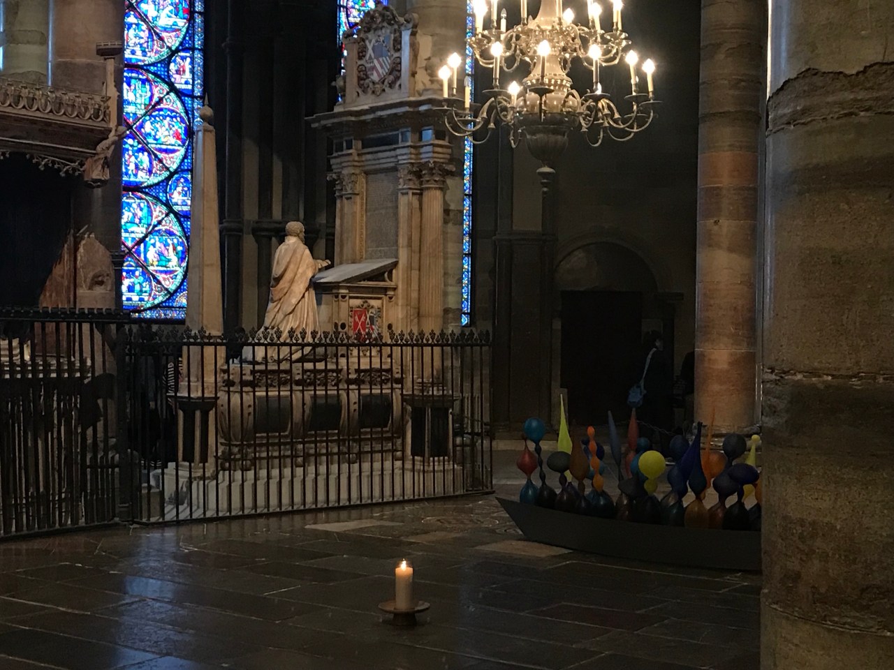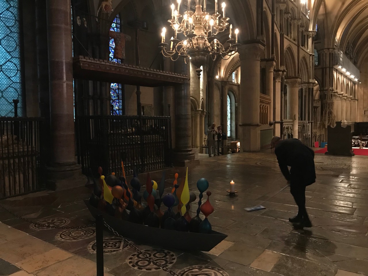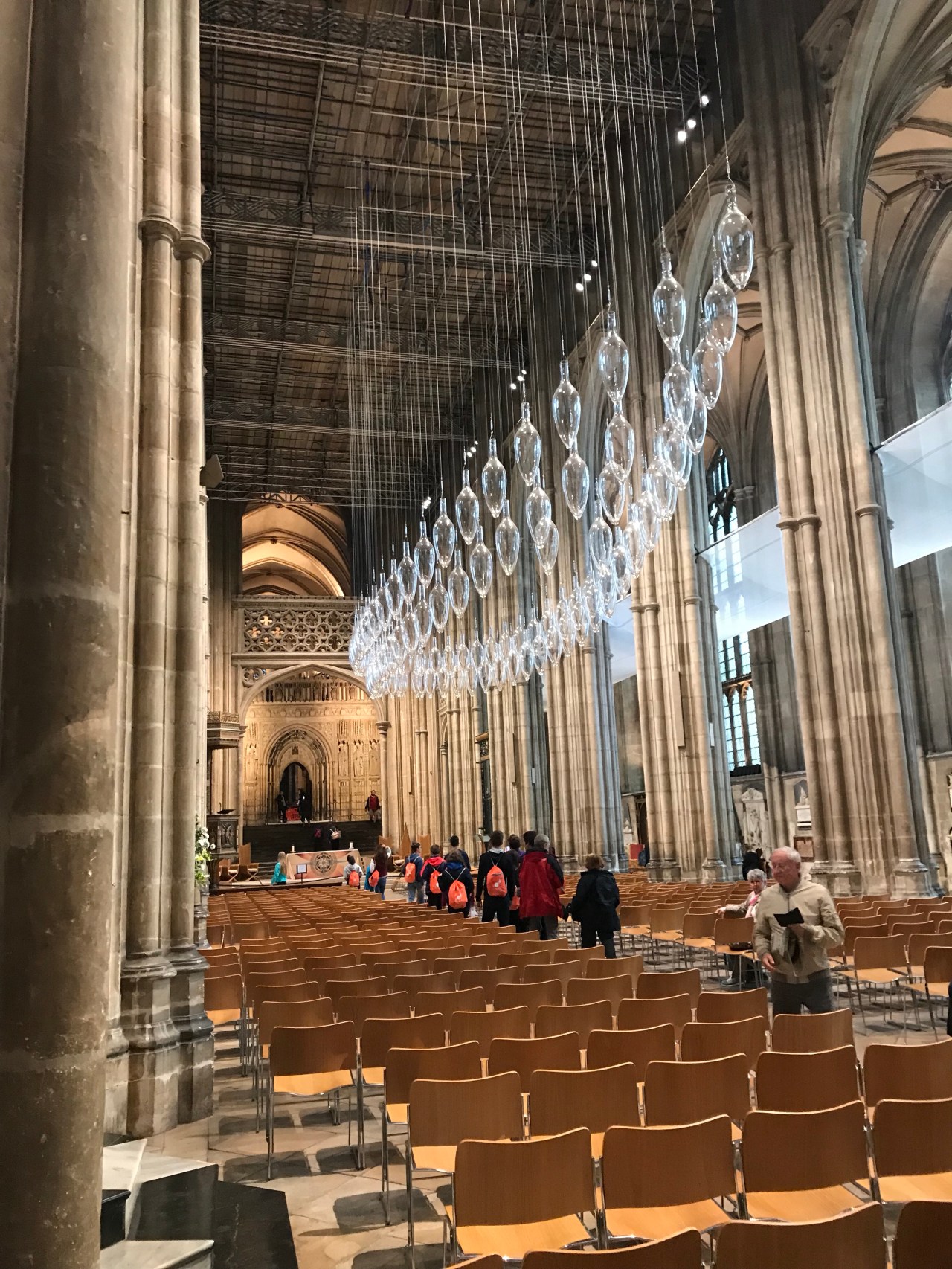 The cathedral was more beautiful than I expected, despite the fact that it’s undergoing a massive restoration project, which hides the towers on the outside and the vaulted ceilings inside. Although this wasn’t my first time in Canterbury, I had never been into the cathedral for which it is famous. I sat for a while in the nave, admiring an art installation by Philip Baldwin and Monica Guggisberg that seemed to fit the space so well. Titled “Boat of Remembrance,” it comprises 100 glass amphorae to represent 100 years of remembrance since the First World War. Part of a set of installations in the cathedral, called “Under an Equal Sky,” I found this work particularly moving, the more so after I read these words in the description: