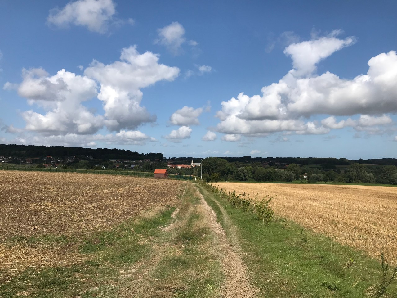Today was my longest distance in a day since I restarted this walk from Canterbury. But I’m not going record daily distances here – the official path takes too many detours – today at Difques it sent me around three sides of a square instead of going through the center if town. For what? So that I could see a black sign like a tombstone, which explains that the path is the old roman way. Frustrating- It should be proposed as an alternative route for the history buffs.