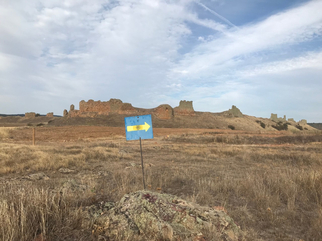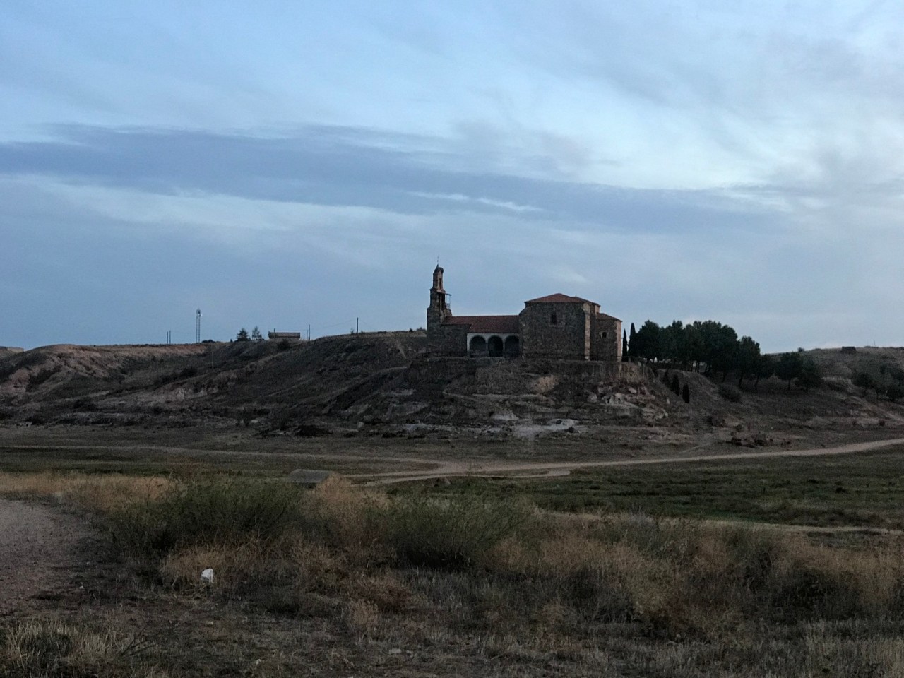 We set off in the dim light of morning after an improvised breakfast at the Montamarta albergue – headlamps attached to our foreheads to alert the oncoming vehicles on the N-630 highway to our presence. Before long, we were off the roads and onto the tracks that lead past the Ermita de la Virgen de Castro. This historic hermitage stands above a valley that is sometimes filled with water. I guess that must be in the spring because I have only ever seen it dry.