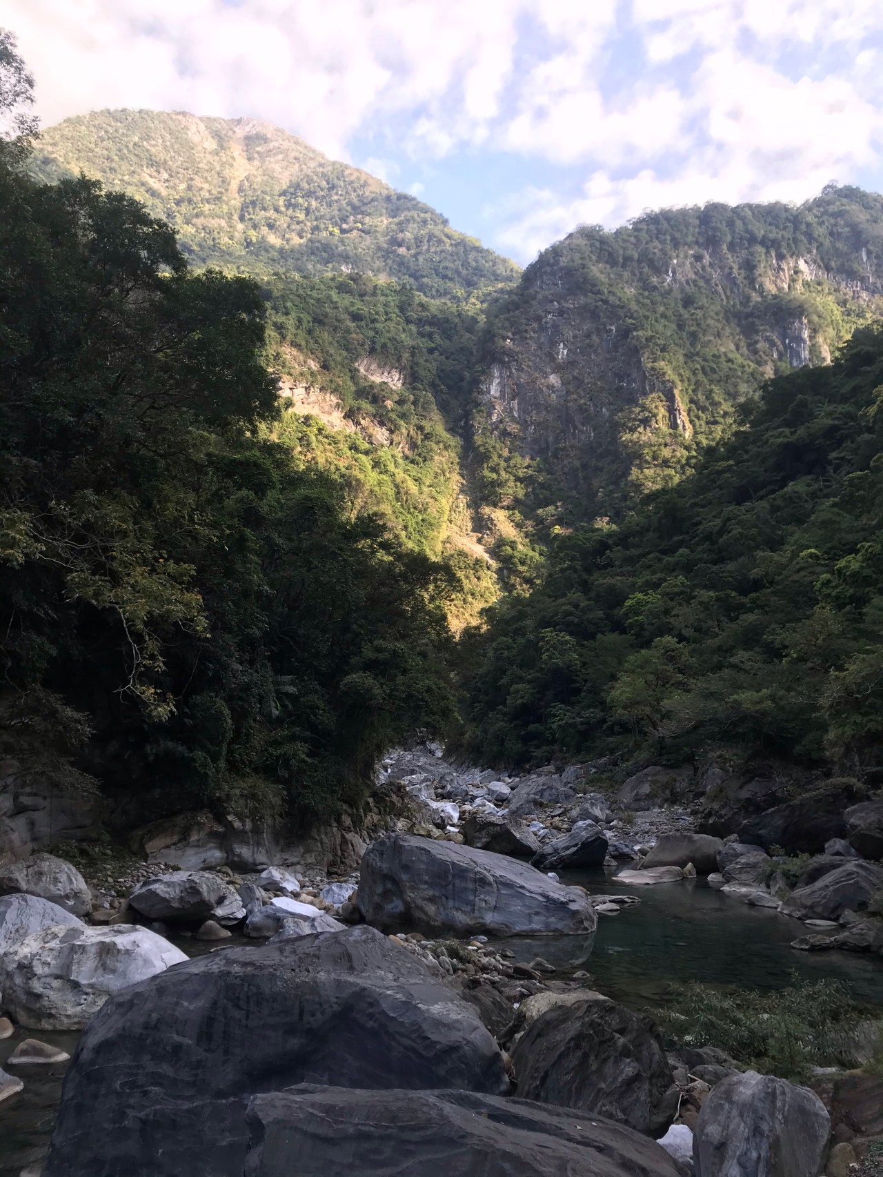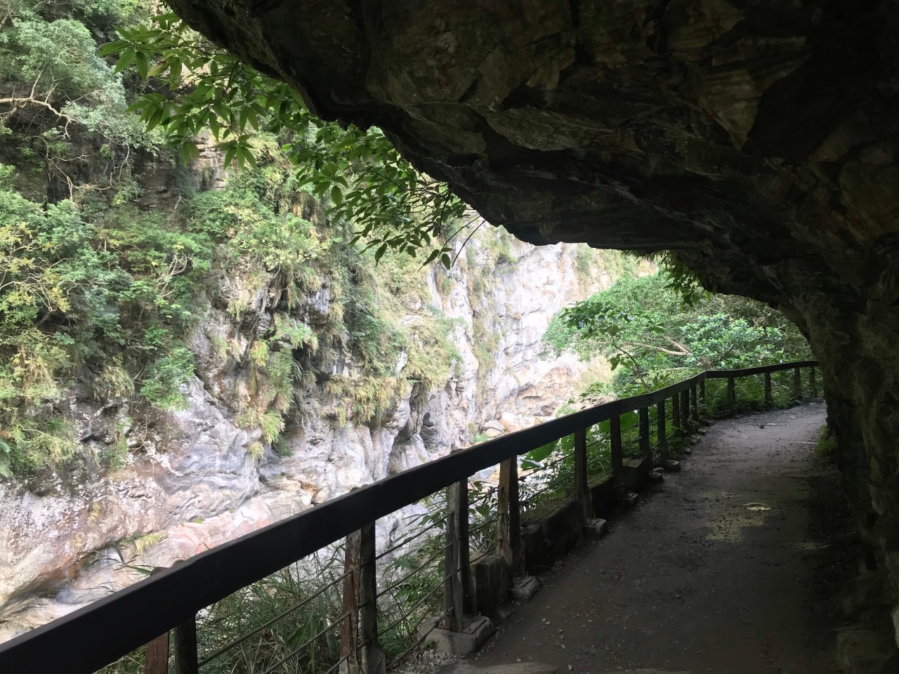 The landscape reminded me of the National Park at the northern end of Tenerife – geologically young mountains with extremely steep sides, covered in lush, tropical, vegetation. The water in the gorge was an enticing turquoise colour, but signs all along the trail warn of the risk of landslides off the path. On our way back down, we met a lot of tourists. It must get very crowded on holidays.